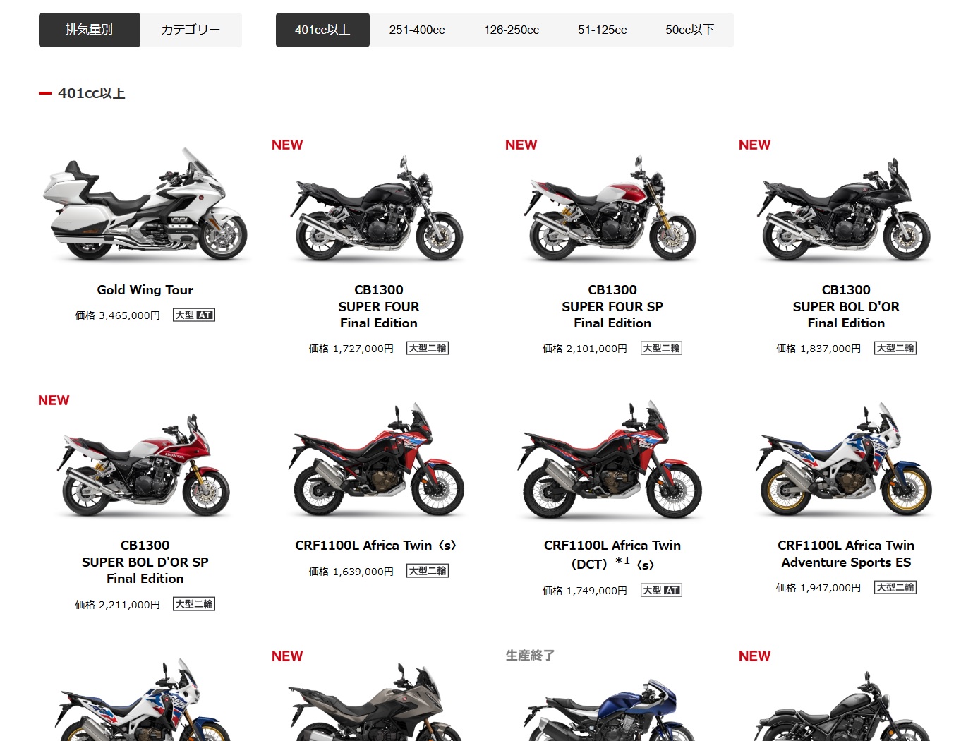 大型バイクは新車が高い